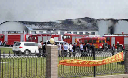 2013 年6 月3 日,省市一家禽业公司发生火警,到上午10 时火势根基被节制住,但现场仍有大量浓烟冒出。摄影/ 张瑶!